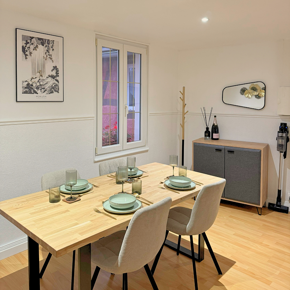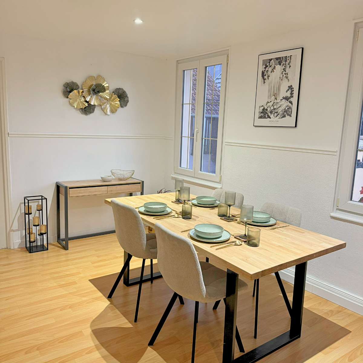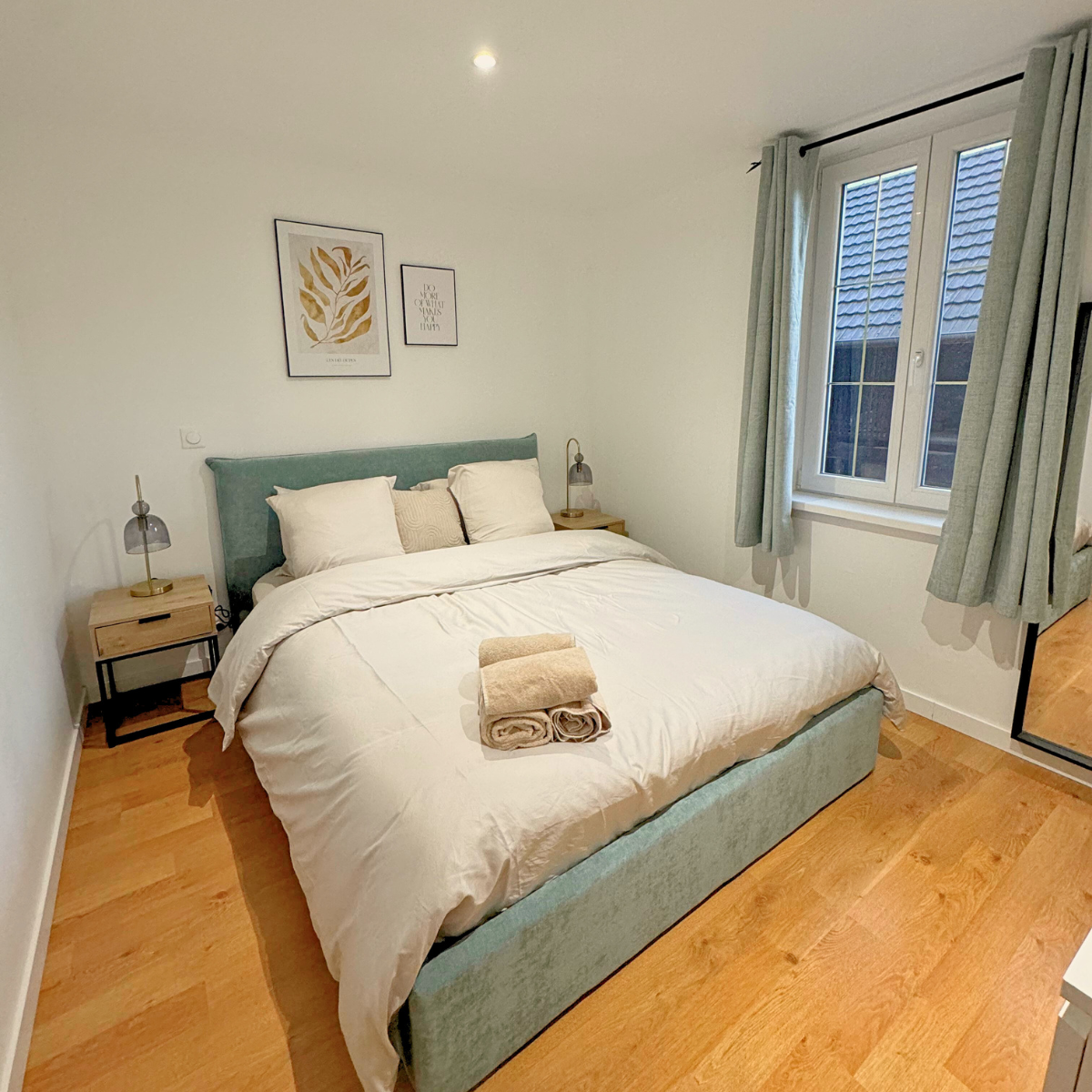 Situé dans une maison traditionnelle alsacienne du XIXᵉ siècle, récemment rénovée, l’appartement allie le cachet de l’ancien au confort moderne. L’espace de vie est pensé pour que chacun s’y sente bien, avec une chambre spacieuse et un grand lit queen size (160 x 200), un salon où l’on peut se détendre ou dormir grâce au grand canapé-lit (160 x 200), ainsi qu’une cuisine entièrement équipée pour ceux qui souhaitent cuisiner sur place.